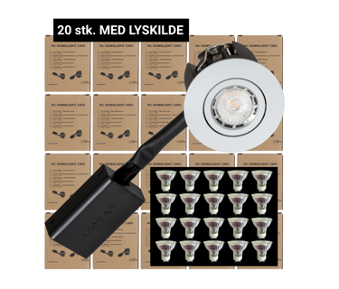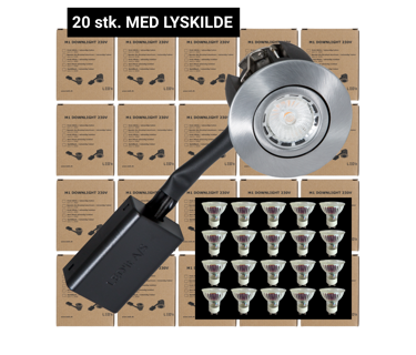 M1 Downlight 230V. Med G3 dæmpbar GU10 / 5W / 3000K / sort / indvendig. (20 sæt)