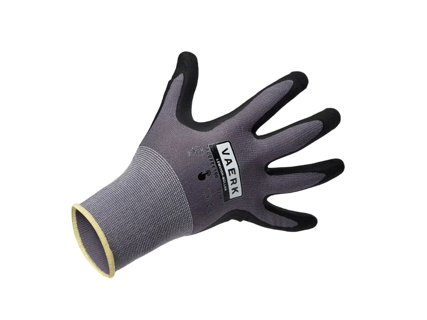 Denne alsidige montagehandske er fremstillet af sømløs nylon/spandex-strik og belagt med slidstærkt nitrilskum i håndflade og på fingre.